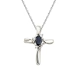 This diamond cross adds a dash of color to a traditional and elegent style with a vibrant 5×3 mm sapphire. The beautiful pendant is set in 10k white gold with .04 total ct diamonds and includes an 18″ chain.Price:$ 199.99 Buy it from Amazon |