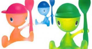 This little smiling kid by Alessi will keep your egg and a spoon. His cap is a salt castor with a small hole on the top and you can choose from bright colors to cheer up your meal. Design Stefano ...