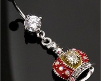 14 Gauge 3/8 implant grade (the best) surgical steel navel Body Jewelry has a dangling royal crown that features stone inlayes of bot C.Z. and opelecent cut stones, hanging beneath yet another large C.Z.. This Body jewelry is very unique ...