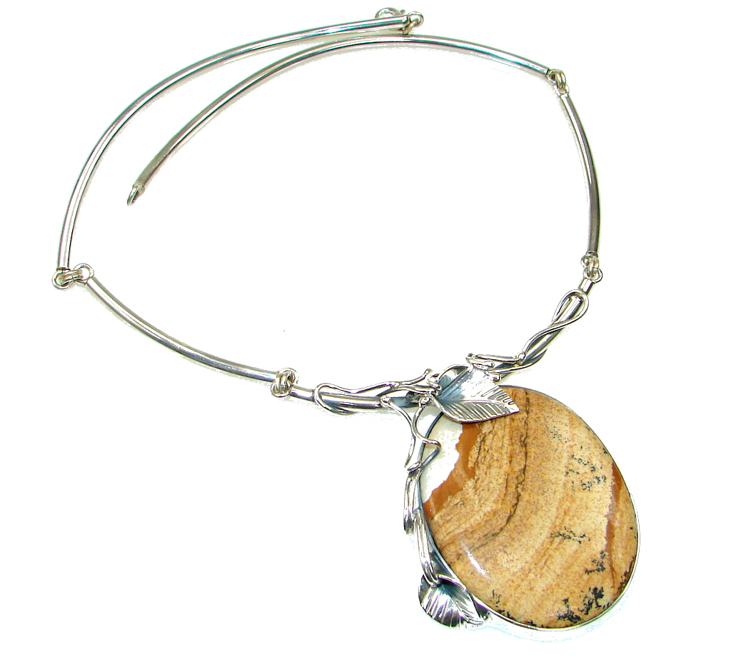 Handmade Artisan Sterling Silver 925 Necklace with unique one of a kind Picture Jasper, 67.00 grams of marvelous handcrafted jewelry design. Only one piece availble ready to ship! It’s unique worldwide necklace – simply piece of art in world of fine jewelry. Galaxy Queen! Handcrafted AAA Picture Jasper Sterling Silver Necklace NECKLACE DETAILS: Weight: 67.00g; Material: Sterling Silver; Main stone: Picture Jasper; Inner circumference: 16 inch; Drop Part: 2 1/4 inch; Clasp: S; Stamp / Mark: 925; Condition: New; Main color: brown; Shape: oval; Style: Polish; Item Code: 27-lis-15-30Price: $ 140.0 Read More and Buy it here!