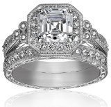 Platinum Plated Sterling Silver Swarovski Zirconia Asscher Antique Ring Set, Size 8 Wedding set with filigree engraving on half-eternity band and ring with asscher-cut center stone of Swarovski zirconia Imported List Price: $ 70.00 Price: $ 37.82 Related Jewelry Products