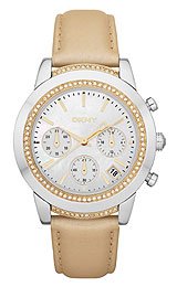 Dress watch, Japanese quartz movement, Chronograph featuring 24-hour, 30-minute and chronograph seconds subdials, Polished gold-tone hands and sweep seconds, Polished gold-tone hands mark subdials, Applied polished gold-tone baton markers, Black Arabic numbers and indices mark subdials, Black indices form surrounding minute track, White mother-of-pearl dial with polished gold-tone logo applique below twelve o’clock, Beige genuine leather strap with contrast stitching and polished silver-tone stainless steel buckle, Polished silver-tone stainless steel bezel with gold-tone top ring and encrusted with crystals, Oversize polished silver-tone stainless steel round case encrusted with crystals, Textured steel crown, Polished steel selector buttons, Stainless steel screw-in caseback, Mineral crystal, 5ATM (50 meters/165 feet water resistant)Price: $ Read More and Buy it here!