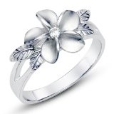 925 Sterting Silver Plumeria Cubic Zirconia CZ w/ Maile Leaf Hawaiian Flower Band Ring Sz 7 Solid Sterling Silver w/ 925 stamp Rhodium Plated AAAAA+ Quality CZ Stones Free gift Box!! This sterling silver band ring features a plumeria flower ...