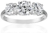 Sterling Silver Three-Stone Cubic Zirconia Ring (3.83 cttw), Size 8 Exquisite and affordable, this ring features three prong-set simulated diamonds, which enhance the expensive look of this timeless treasure. Cubic Zirconia is an affordable diamond alternative that reveals brilliant shine ...